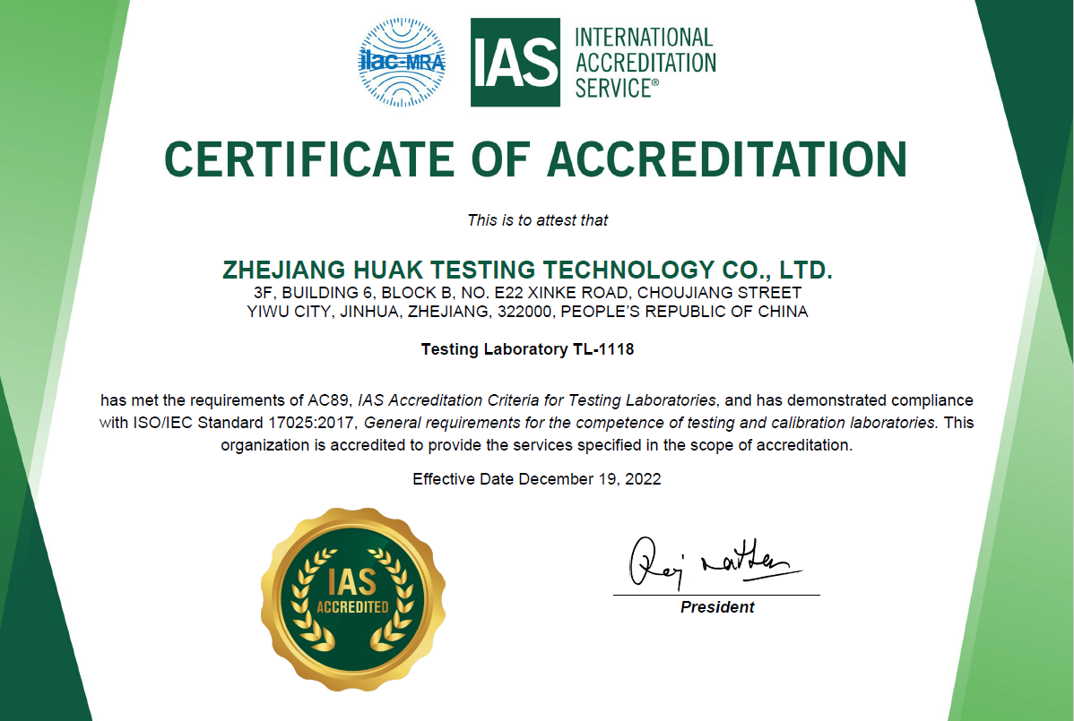 浙江華柯檢測技術有限公司順利通過IAS測試實驗室認可準則的要求,并于2022年12月19號成為符合ISO 17025認可實驗室